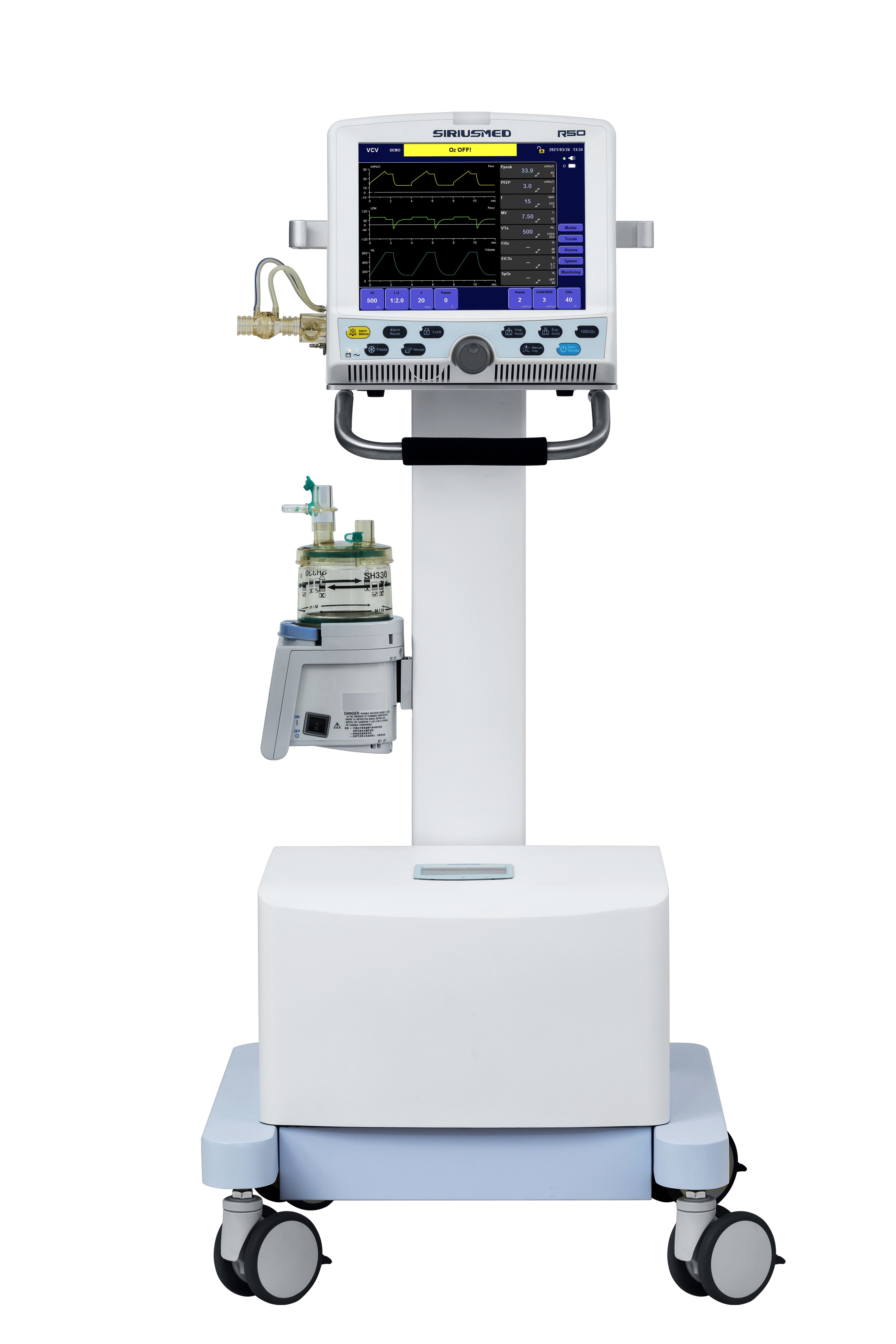 Mencapai pernapasan selama inspirasi dan ekspirasi.Secara aktif mengontrol tekanan target, mencegah tekanan jalan napas tinggi, meningkatkan sinkronisasi ventilator pasien.Mudah dilepas dan disterilkan katup pernafasan & sensor aliran modular.